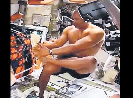 ‘Uzay duşu’ alırken kameraya yakalandı